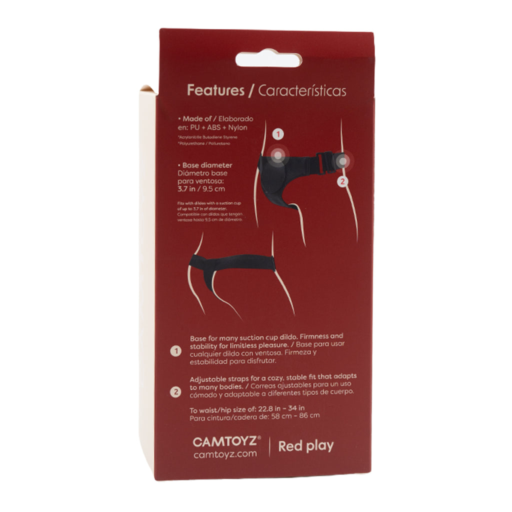 Adaptable a cualquier dildo con ventosa, este arnés está fabricado con materiales de alta calidad como PU, ABS y Nylon, garantizando resistencia y un ajuste perfecto.
