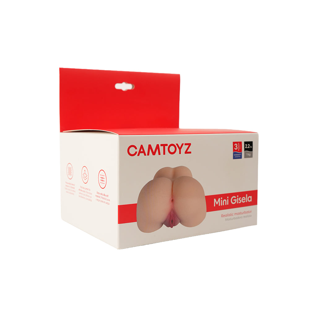 Mini Gisela es una masturbadora realista de diseño compacto que incorpora doble entrada vaginal y anal, ambas con canal interno texturizado para generar sensaciones más intensas durante el uso.