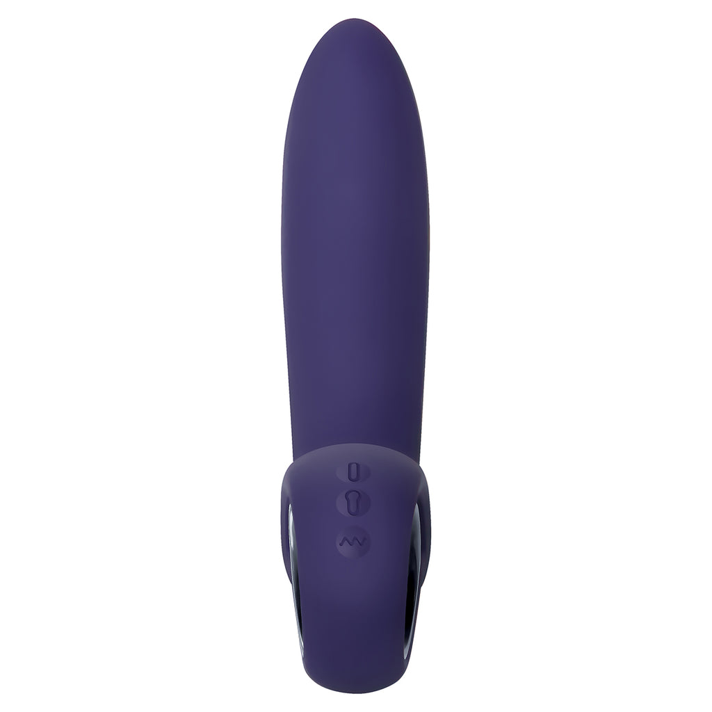 Su diseño permite un fácil manejo desde de aro en la base del vibrador donde también se encuentran los 3 botones de control: El botón de encendido y modos de vibración, el botón para inflar y botón para desinflar.